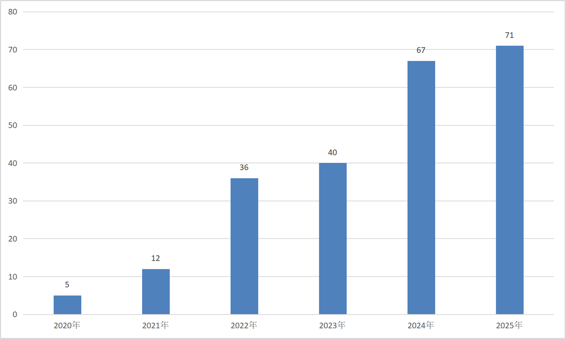 Wind数据显示,截至7月17日,今年以来已经有67家上市公司公告了71次询价转让,而自2020年8月询价转让制度开始在科创板试点以来,一共有155家上市公司公告了231次询价转让,其中2020年-2024年各年度上市公司累计公告的询价转让次数分别为5次、12次、36次、40次和67次。